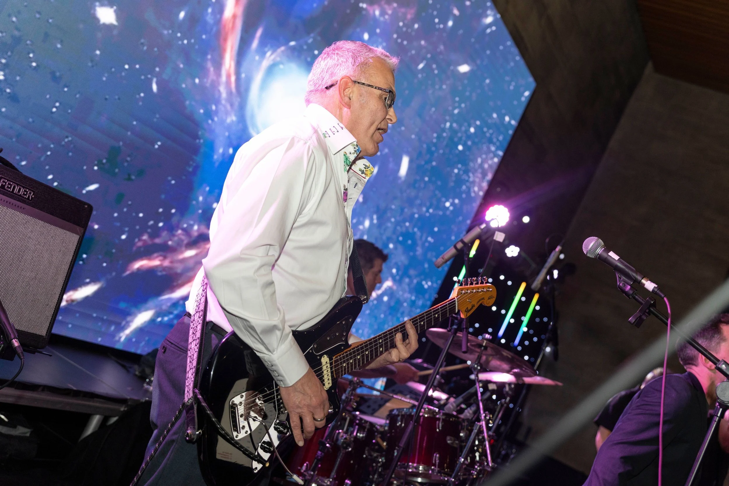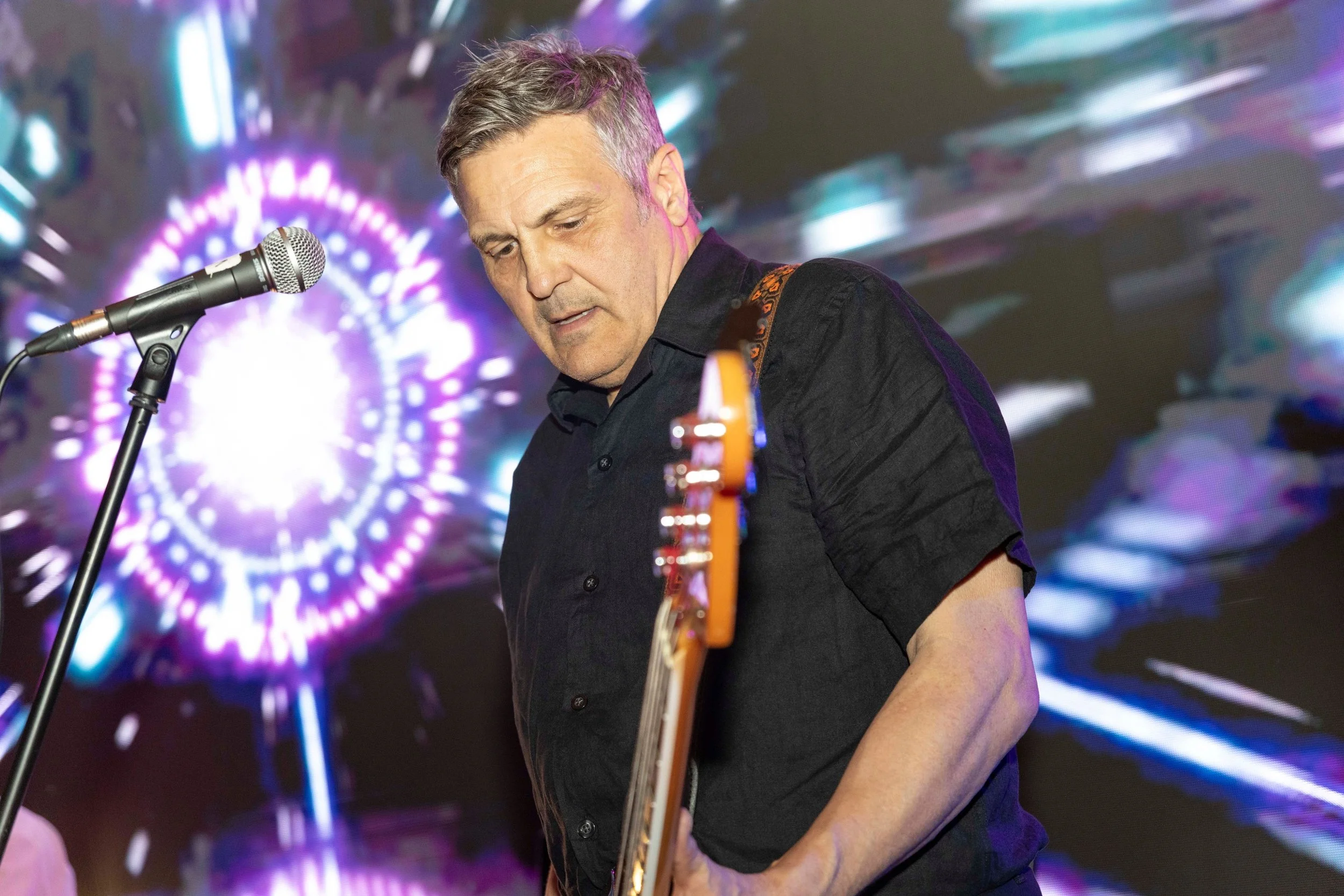 He has a fine collection of acoustic and electric guitars, and sometimes remembers to join in on backing vocals.